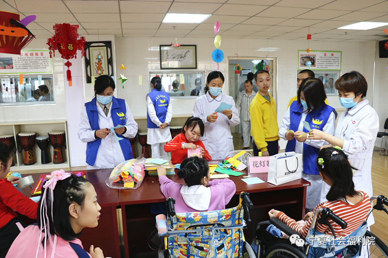 春风熙熙,花灯璀璨。2021年2月26日宁夏社会福利院张灯结彩,洋溢着浓烈的节日气氛。新年以来,社工康复科在院领导的大力支持下,一手抓好疫情防控常态化工作,一手抓好康复创新工作,将康复治疗和文化活动相结合,一直将其放在工作首位。今日以传统节日为依托协同膳食科、临床科室以及我院“心之翼志愿服务队”举办“2021一路有你,喜乐元宵,浓情宁福”主题活动。活动得到院领导高度重视,宁夏社会福利院副院长宋红同志亲临现场并致辞,代表院领导班子向康复员朋友以及工作人员致以节日的祝福,祝福大家在新的一年里开心快乐,牛年更牛!