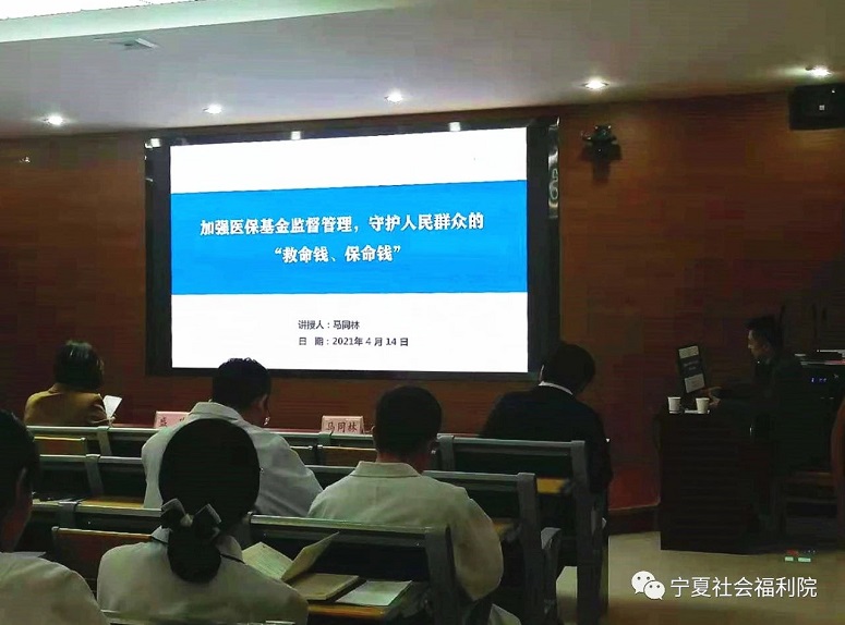 为使我院干部职工更好的了解医保政策的动态,合理使用医疗服务资源,提高加强医保基金监督管理,近期,宁夏社会福利院举办了以“加强医保基金监督管理,守护人民群众的救命钱、保命钱”为主题的医保政策解读培训班。