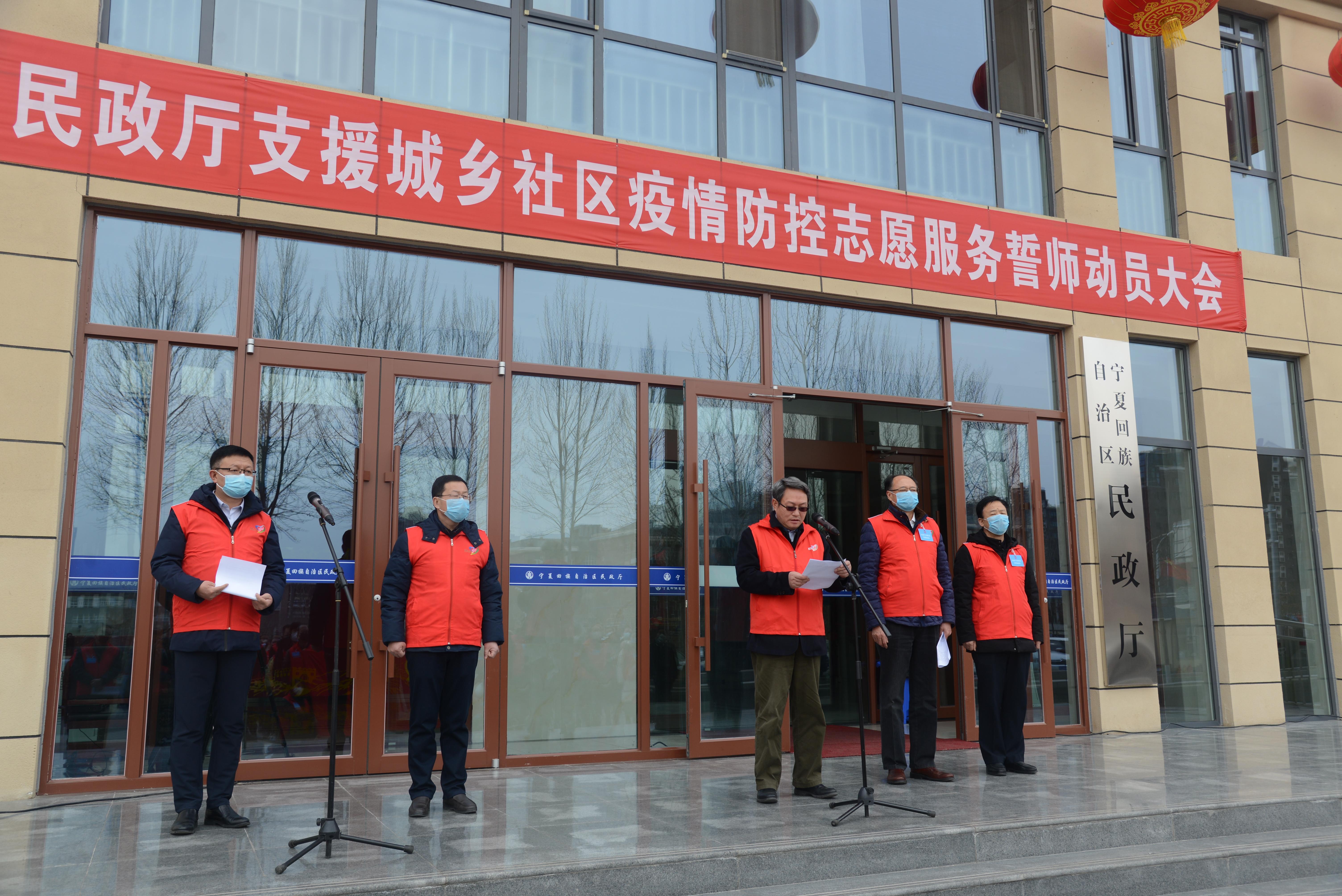 2月1日下午15时许,民政厅党组发出“动员集结令”,举行民政厅支援城乡社区疫情防控志愿服务工作誓师动员大会,民政厅由1名厅领导任队长,成立3个临时党支部,整装集结由104名党员、共青团员、干部职工、医护人员组成的“支援城乡社区疫情防控志愿服务队”,下沉到兴庆区、金凤区、西夏区51个城乡社区,在社区防控一线亮身份、见行动、作贡献,以坚定的政治担当深入贯彻习近平总书记关于“让党旗在防控疫情斗争第一线高高飘扬”的重要指示,以强有力的实际举措坚决落实自治区党委、政府疫情防控决策部署和防疫工作“五个凡是”“三个全面”“四个实行”要求,用行动践行初心使命,用作风彰显党员本色。民政厅党组班子成员、厅级领导以及机关各处室(局)、厅属各单位主要负责同志,全体支援城乡社区疫情防控志愿服务队成员参加誓师动员大会。
